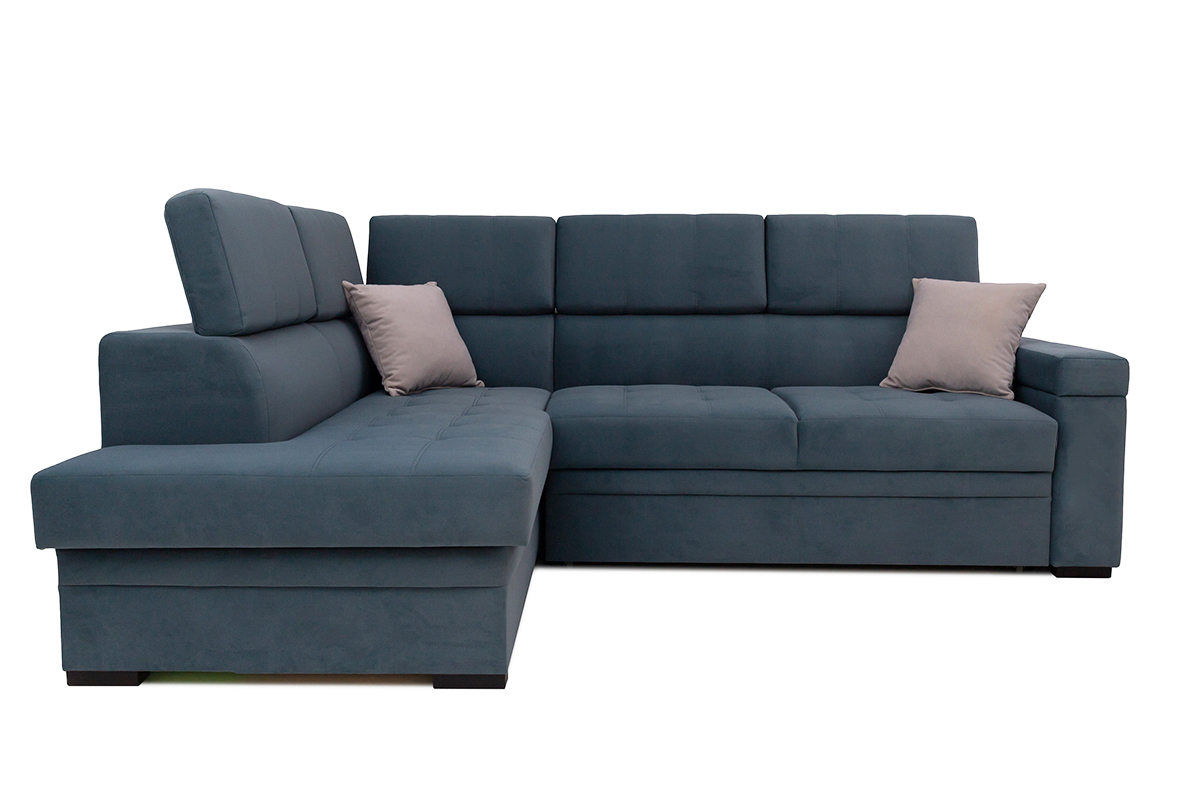 Диван-кровать угловой Влада — удобная, оригинальная модель, с большим спальным местом.  В разложенном виде представляет удобную 2-х спальную кровать. Сидение на основе независимого пружинного блока. Имеется емкость для постельных принадлежностей в угловой части дивана. Подушки спинки не съемные, оснащены механизмом, который позволяет менять угол наклона. В комплект входят 3 декоративные подушки. Возможна комплектация левого и правого угла. Может изготавливаться в разных цветовых решениях.  Механизм трансформации — «дельфин».