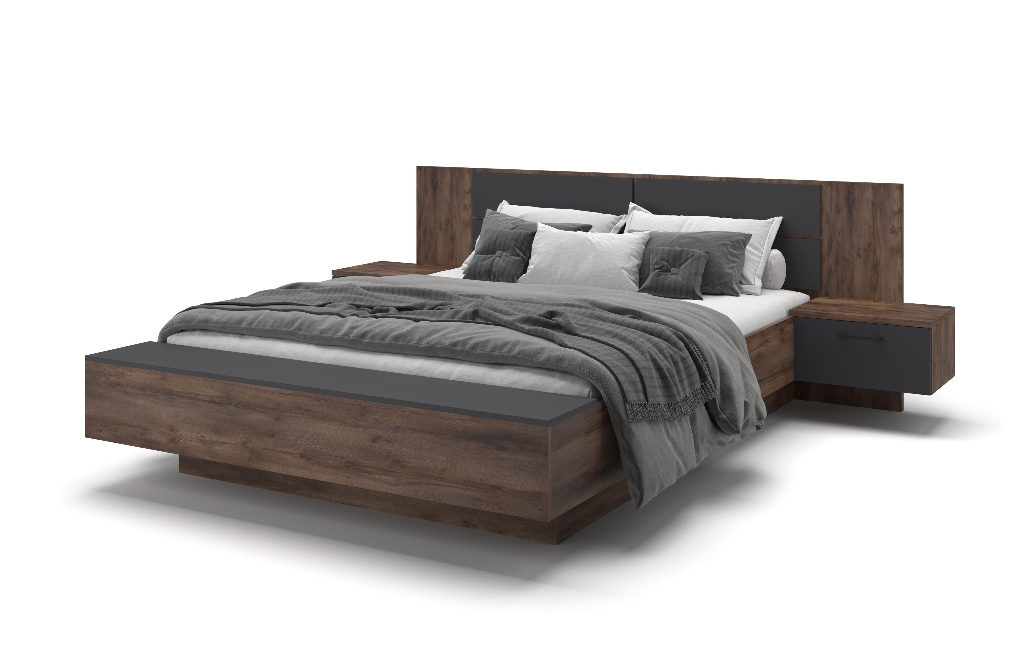 Двуспальная кровать 2200 из коллекции «Вирджиния» отдают предпочтение ценители комфортного сна. Размеры изделия обеспечивают просторное спальное место, соответствующее европейским стандартам.Конструкция кровати дополнена встроенными двумя тумбочками с закрытым ящиком для хранения. Габаритное изголовье, свойственное элитной мебели, создает особое настроение, которое подчеркивает оригинальная цветовая палитра «Таксус/графит». Глубокий оттенок древесины дополняют матовые темные элементы.При высокой эстетической привлекательности, изделие не лишено высоких функциональных и эксплуатационных свойств, обеспеченных современным материалом изготовления в виде ЛДСП. Ширина: 264,0 см