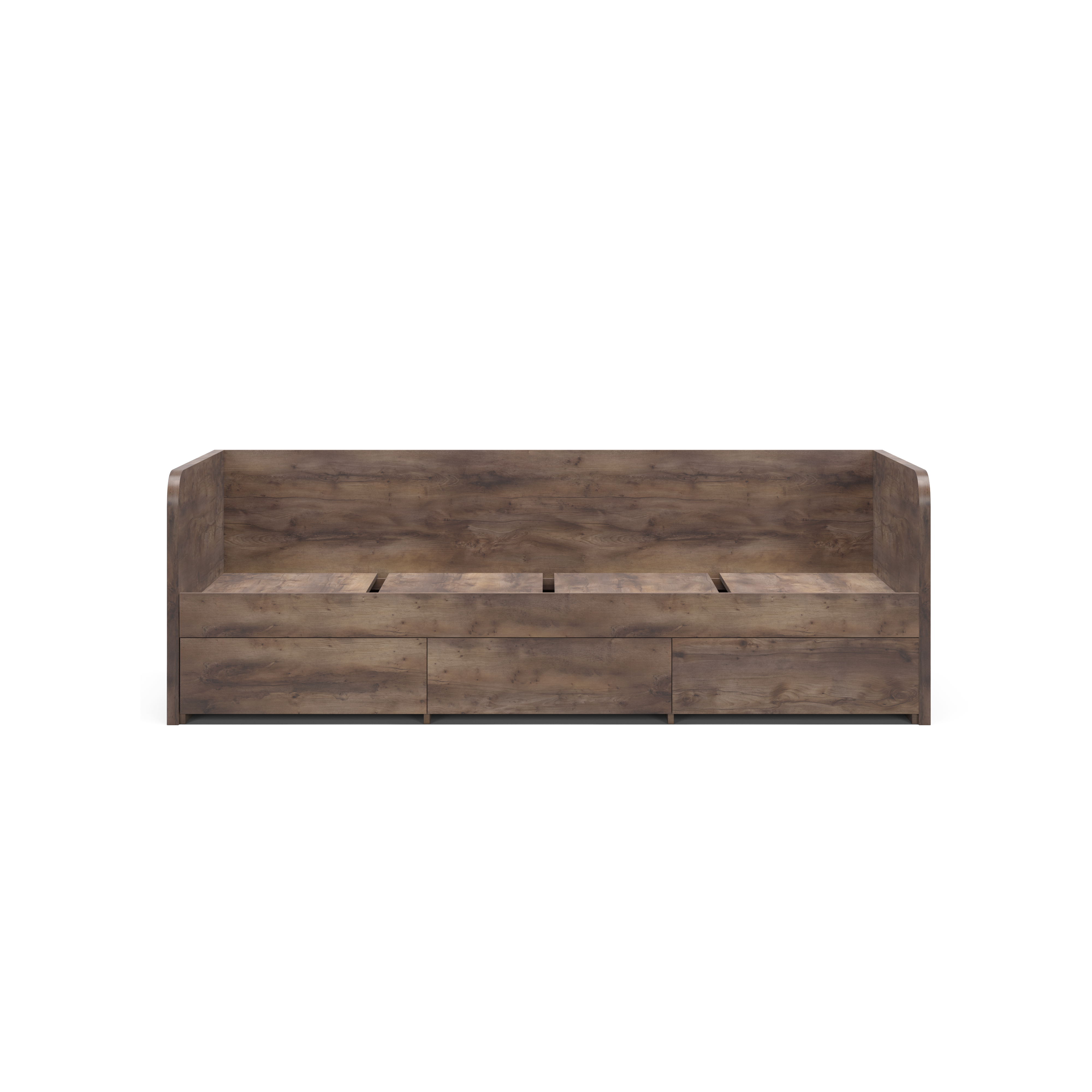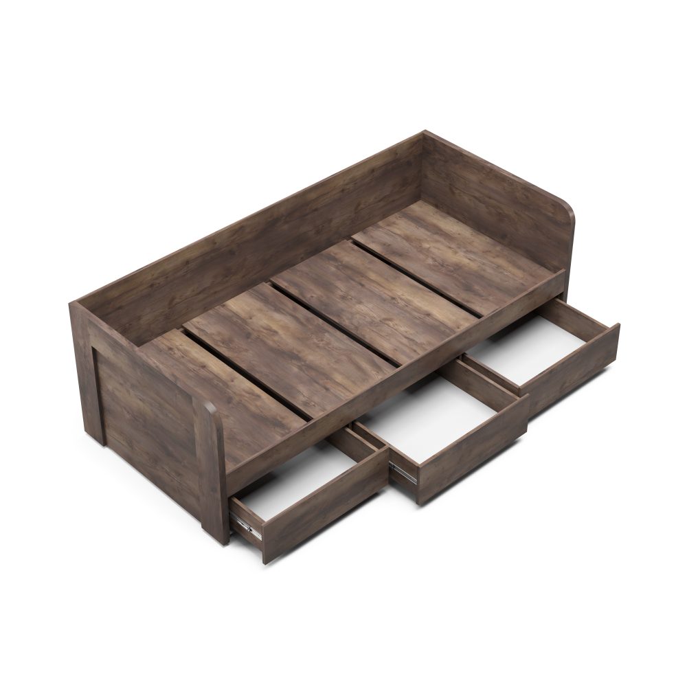 Односпальная кровать 900 3я от Mystar имеет оригинальный дизайн, который подчеркивают плавные линии изголовья и изножья. Модель представлена в трех цветовых решениях: «Дуб Бонифаций», «Таксус» и «Сосна Каньон». Данные оттенки прекрасно вписываются в интерьер спальни, оттеняя доминирующую палитру цветов в интерьере. Удобное спальное место на одного человека обеспечено размерами кровати: 2075х944х691 мм. Изделие не ограничивается решением вопроса об организации комфортного сна. Три вместительных выдвижных ящика легко справляются с хранением постельного белья и прочего домашнего текстиля. Кровать Вирджиния способствует созданию гармонии в помещении, его опрятности и уюту.