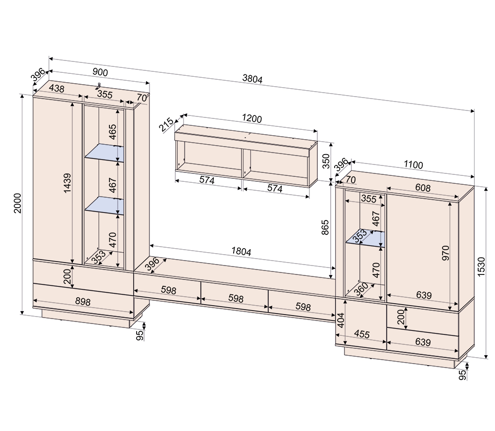 *подсветка стеклянных полок устанавливается за дополнительную оплату