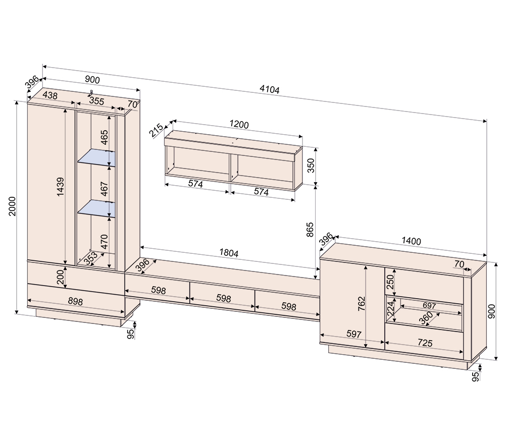 *подсветка стеклянных полок устанавливается за дополнительную оплату