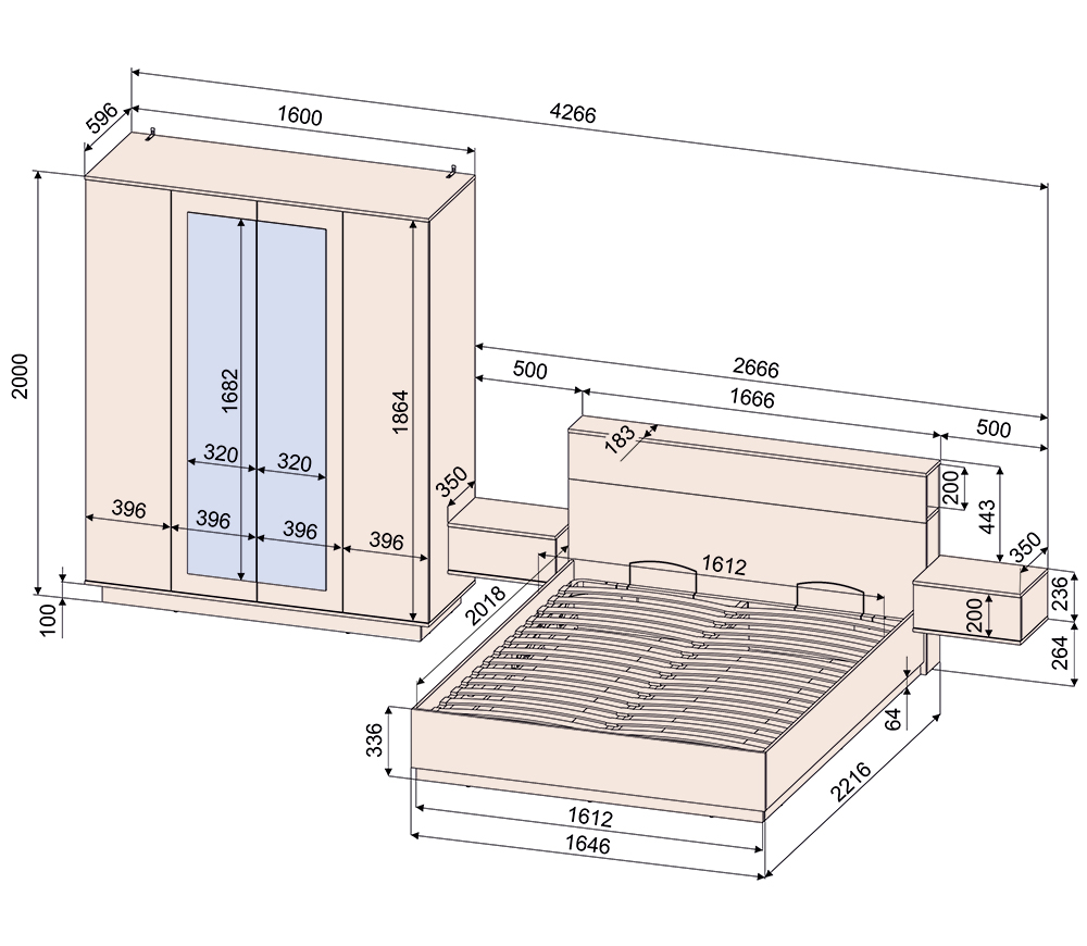 *за дополнительную оплату в кровати может быть установлен подъёмный механизм