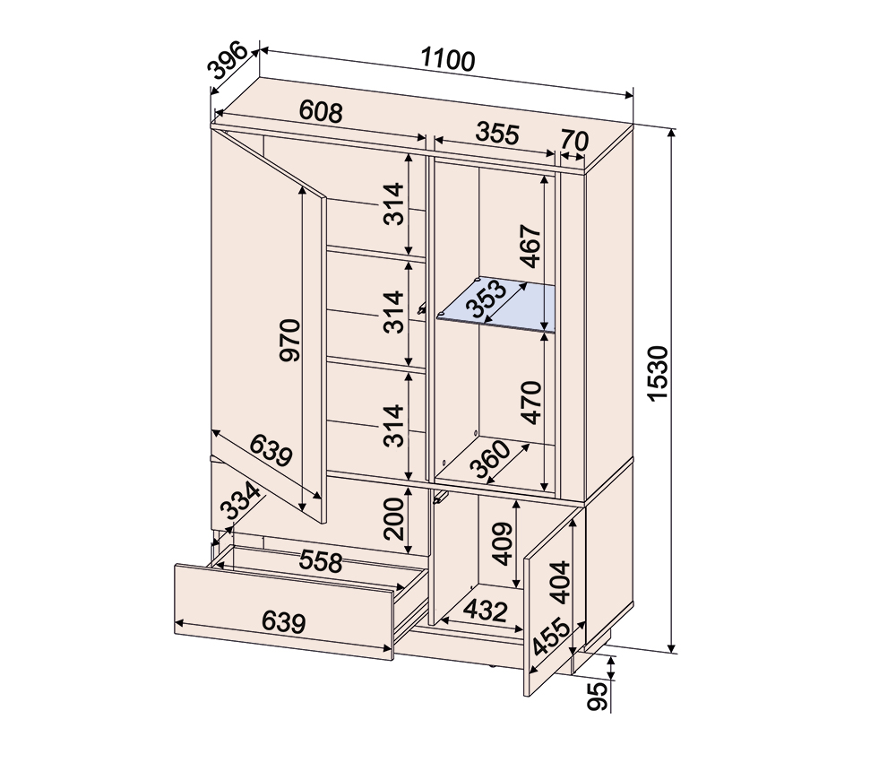 *возможна установка подсветки стеклянных полок за дополнительную оплату
