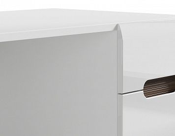 В правой части расположен 1 выдвижной ящик, в нижней части расположена 1 глухая распашная дверь, за которой находится полка из ДСП;