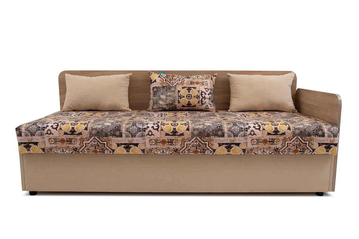 Тахта  Анна-1 — односпальная тахта. Простота и удобство в использовании. Отличительной особенностью от тахты «Анна» является выполнение спинки и боковины из МДФ.  Сидение изготовлено на основе пружинного блока и пенополиуретана эластичного, основание сидения – пиломатериалы хвойных пород. Боковина универсальна — монтируется справа или слева. В комплект входят три декоративные подушки. Может изготавливаться в разных цветовых решениях. Благодаря  подъемному механизму тахта имеет вместительный короб для белья.